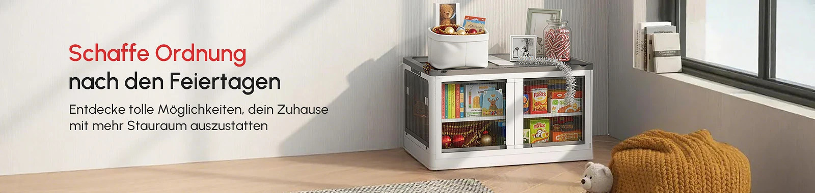 Aufbewahrungshocker und -bänke eignen sich perfekt für kleinere Weihnachtsartikel, die keinen festen Platz benötigen. Sie bieten flexible Sitzgelegenheiten und diskreten Stauraum, lassen sich leicht öffnen und passen in jede Ecke.
