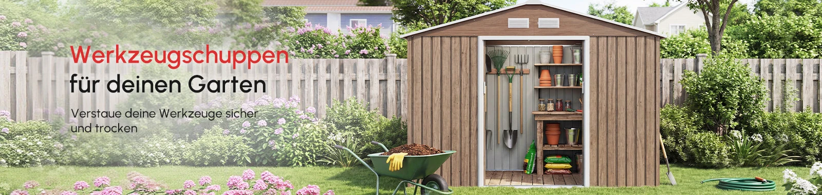 Die Anlehnkonstruktion passt sich perfekt an Wände an und hilft Ihnen dabei, wichtige Werkzeuge zu verstauen, ohne den Mittelpunkt Ihres Gartens einzunehmen.