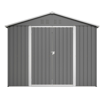 Metall-Gartenschuppen, breite Doppeltür, für Gartengeräte und Werkzeugaufbewahrung, 229x180x191 cm, Anthrazit