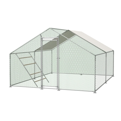 Freilaufgehege Hühnerstall mit Sicherheitsschloss und Wasserdichtes PE-Tuch, für Hühner, Kaninchen und weitere Kleintiere, 303x157x200 cm, Silber
