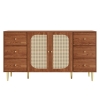 Sideboard 120 cm breit, Rattan Design mit verstellbaren Ablagen, massives Holzbein, für Wohnzimmer, Walnuss