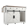 Kücheninsel mit klappbarer Tischplatte, Servierwagen auf Rollen mit 2 Schiebetüren und 3 Schubladen, 140 x 45/73 x 94 cm, Weiß