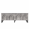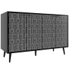 Anrichte 120 cm mit Tropfenschnitzerei Geformte Türen Pufferscharnier Stauraum für Wohnzimmer Schwarz