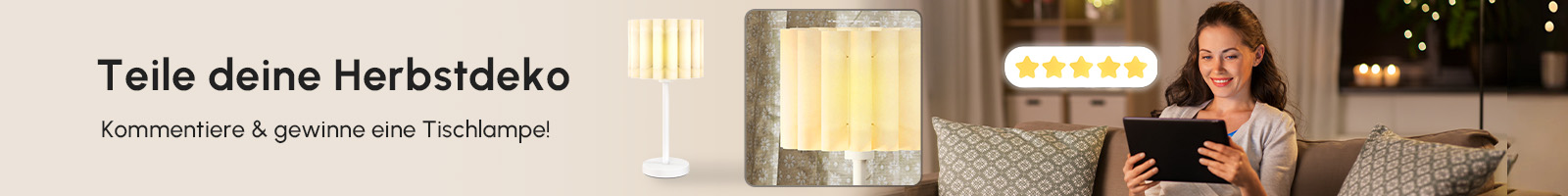 Schaffen Sie eine sanfte und behagliche Atmosphäre mit Lampen, die Ihre Abende erhellen und jedem Raum Wärme verleihen.