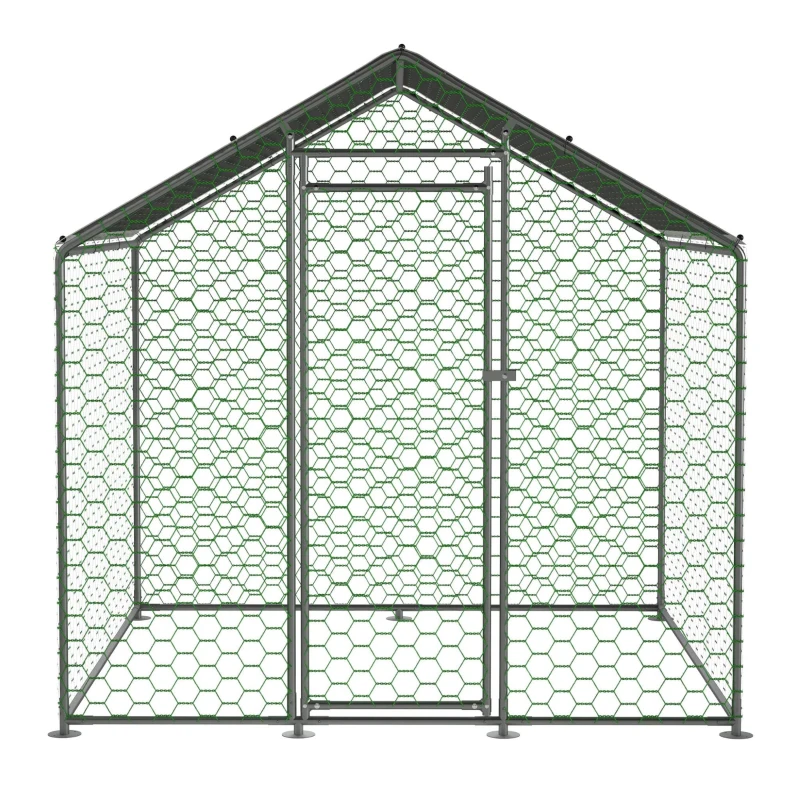 Freilaufgehege Hühnerstall mit Sicherheitsschloss und Wasserdichtes PE-Tuch, für Hühner, Kaninchen und weitere Kleintiere, 203x197x200 cm, Silber