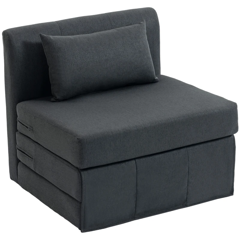 HOMCOM 2-in-1 Schlafsessel Klappbares Sofa-Bett mit Leinenstruktur, Gepolstertes Gästebett Klappstuhl, Dunkelgrau