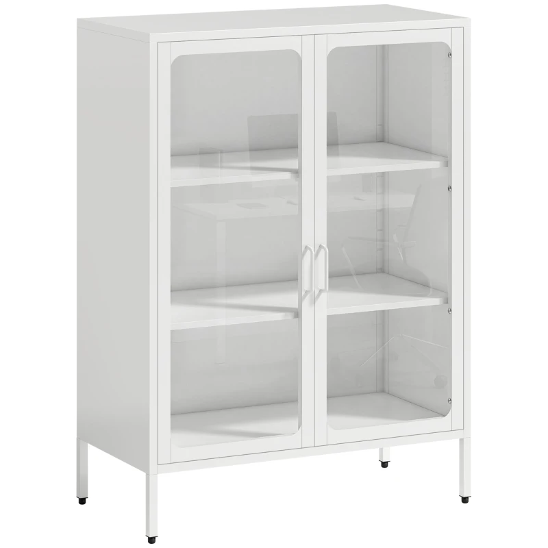 HOMCOM Aufbewahrungsschrank aus Stahl mit 2 Glastüren und verstellbaren Einlegeböden, 80x40x110 cm, Weiß