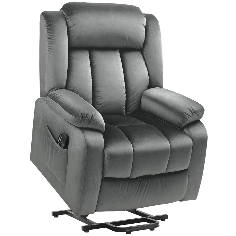 HOMCOM Aufstehsessel mit Massagefunktion und Lendenheizung, Recliner-Sessel mit Fernbedienungen und Seitentaschen, Grau