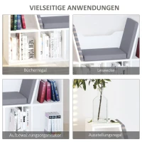 HOMCOM Bücherregal mit Sitzhocker Sitzbank Sitzbänke & -truhen mit 6 Stauräumen für Aufbewahrung Sitzbar mit Kissen Spanplatte Schaumstoff Leinen Weiß+Grau 102 × 30 × 61 cm