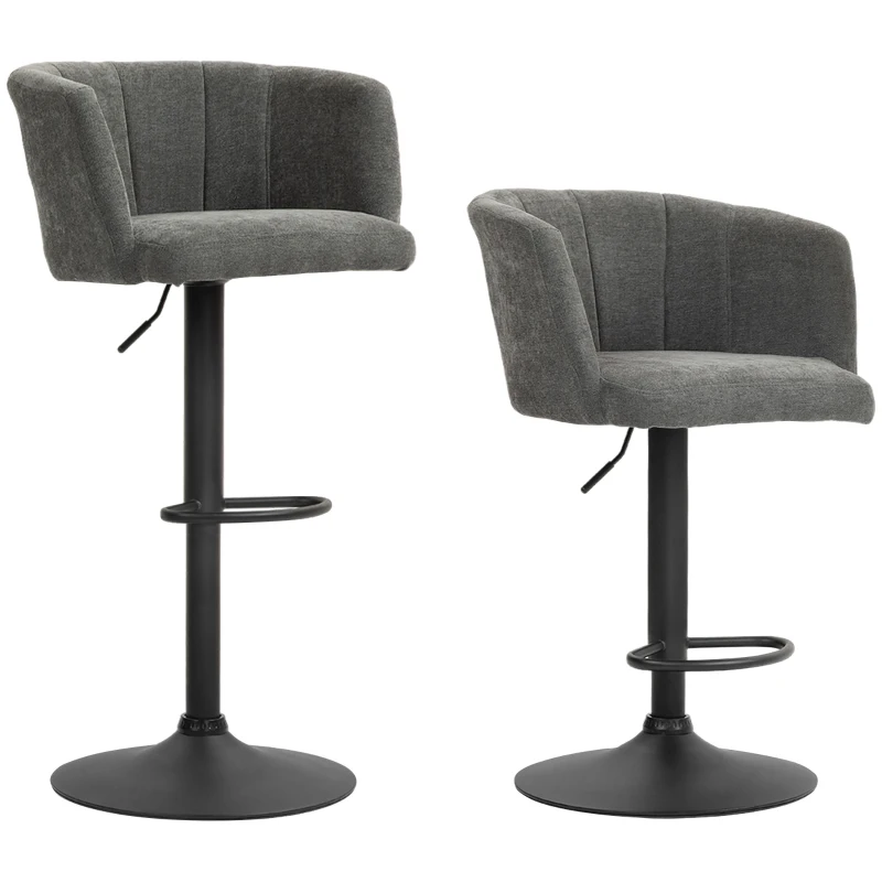 HOMCOM Barhocker 2er-Set, Schalenrücken, höhenverstellbar, Fußstütze, für Küche oder Esszimmer, Metallbasis, Dunkelgrau