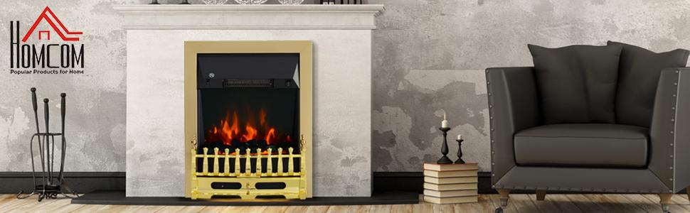 HOMCOM Elektrokamin mit Heizung, elektrischer Kamin mit LED Flammeneffekt, 1000/2000W Dekokamin, elektrisch Kaminfeuer Kaminofen, Gold