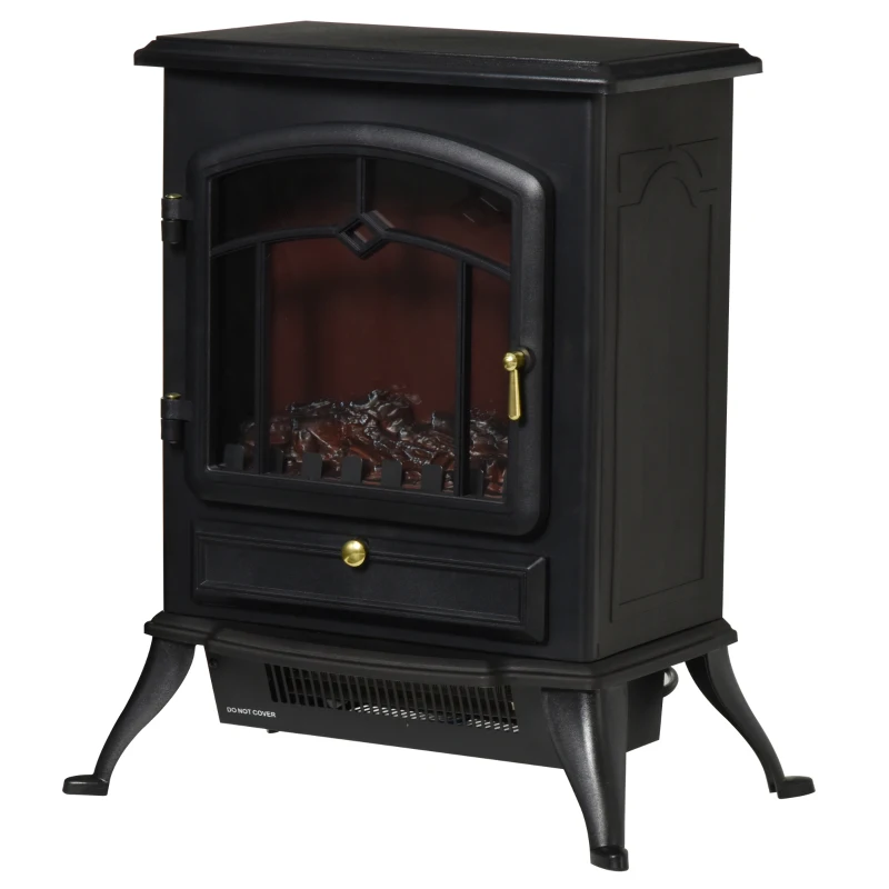 HOMCOM Elektrokamin mit Heizung, elektrischer Kamin mit LED Flammeneffekt, 1000/2000W Dekokamin, elektrisch Kaminfeuer mit Überhitzungs-Schutz Kaminofen, Schwarz