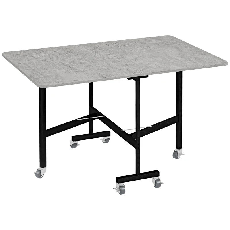 HOMCOM Esstisch für 4-6 Personen, Klapptisch mit Rollen, Stahlgestell, 52,5-120 x 80 x 73 cm, Grau