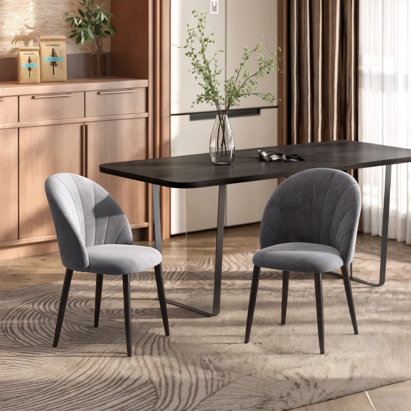 HOMCOM 2er-Set Esszimmerstühle Akzentstühle Küchenstühle, Retrodesign, Samtoptik, 52 cm x 54 cm x 79 cm, Grau