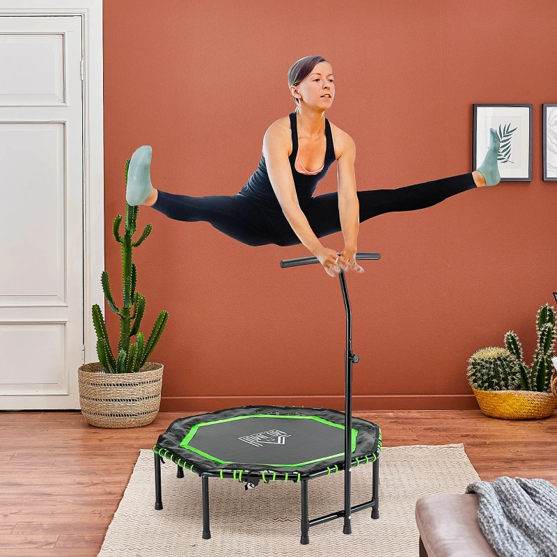 HOMCOM Fitness-Trampolin mit verstellbarem Griff klappbar Trampolin für Kinder und Erwachsene Gartentrampolin Stahl Grün+Schwarz 122 x 122 x 122-138 cm