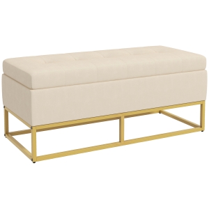 HOMCOM Hocker Polsterhocker, Teddyfleece, versteckter Stauraum, umkehrbarer Deckel, 56 cm x 56 cm x 42 cm, Weiß