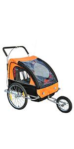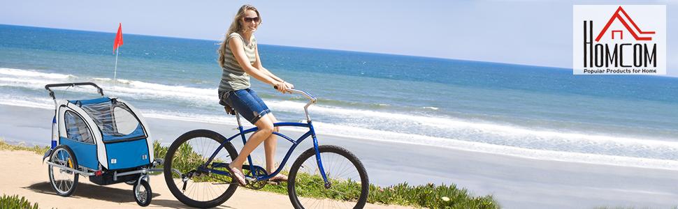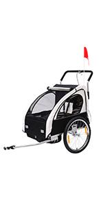 HOMCOM Kinderanhänger Fahrradanhänger Regenschutz atmungsaktiv Weiß+Schwarz Stahlrohr Oxford 155 x 88 x 108 cm
