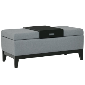HOMCOM Sitzbank mit Stauraum Armlehnen Polsterbank mit Samtoptik, Sitztruhe mit Holzbeine, Truhenbank für Wohnzimmer Schlafzimmer Flur 107 x 42 x 65 cm, Blau