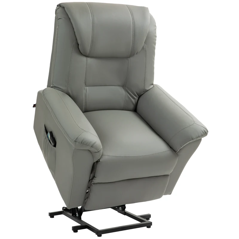 HOMCOM Relaxsessel mit Aufstehhilfe, Massage, Heizung, Kunstleder, 93x95x106 cm, Hellgrau
