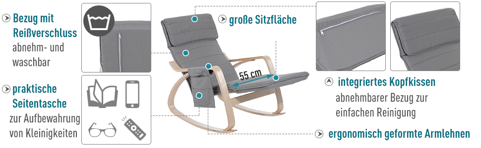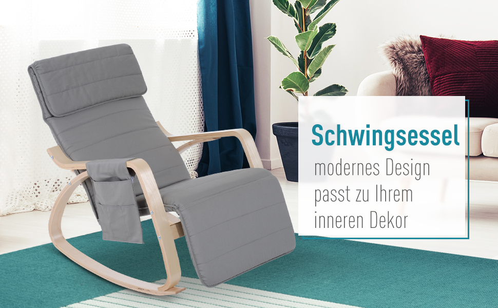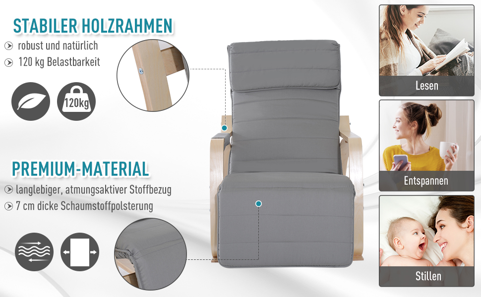 HOMCOM® Schaukelstuhl Relaxstuhl Schwingstuhl Holz Grau