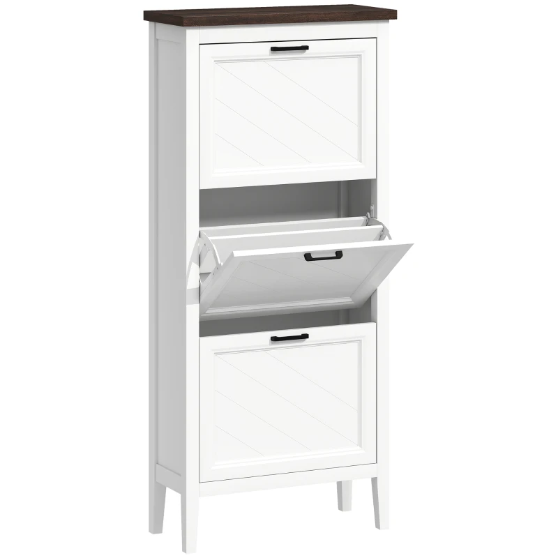 HOMCOM Schuhschrank 18 Paar, schmaler Schuhschrank mit 3 Klappfächern und verstellbaren Einlegeböden, weiß