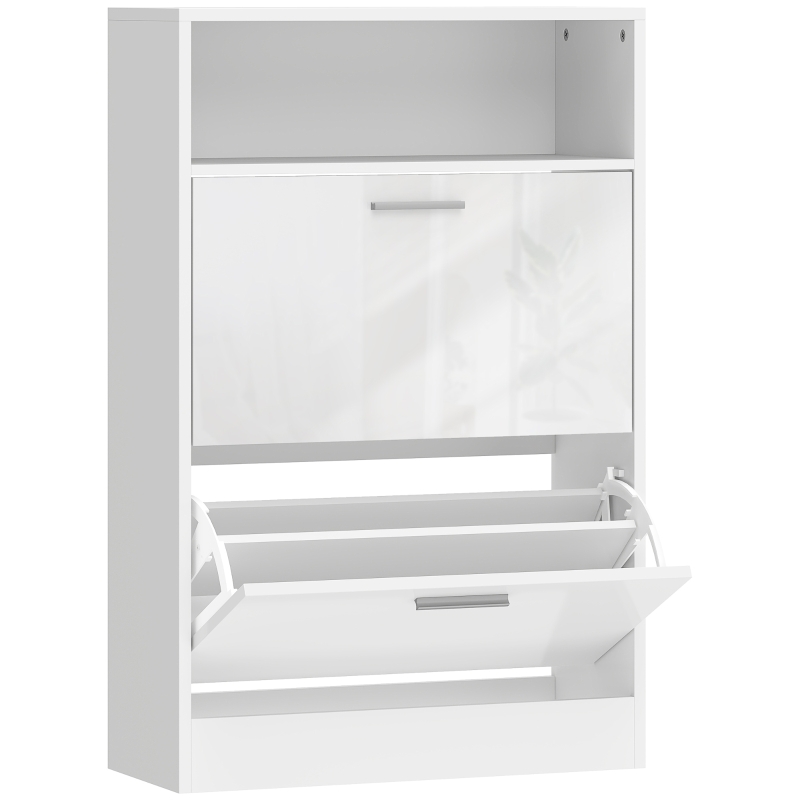 HOMCOM Schuhschrank 8 Paar, Schuhschrank, 2 Klapptüren, verstellbare Ablagen und Fach, weiß