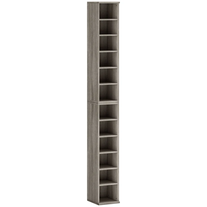 HOMCOM Set mit 2 CD-Regalen mit höhenverstellbaren Einlegeböden, platzsparend für 204 CDs, CD-Aufbewahrung mit 12 Fächern, für Wohnzimmer, Schlafzimmer, Büro, 21x22.5x88.5cm, Grau im Used-Look(m-1)