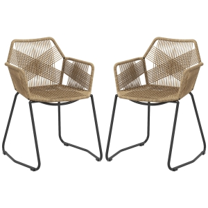 HOMCOM Set mit 2 Dining-Stühlen, Küchenstühle, Rattanrücken, atmungsaktiver Stoff, Stahlrahmen, 44 x 54 x 87 cm, Grau