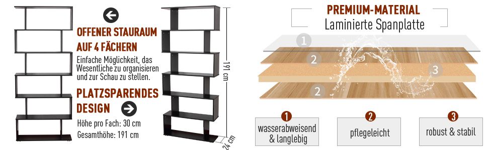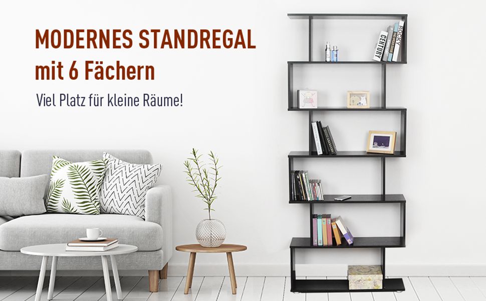 HOMCOM Standregal 6 Fächer CD DVD Raumteiler Wandregal Bücherregal Wandregal Büro Regal 80x24x191 cm