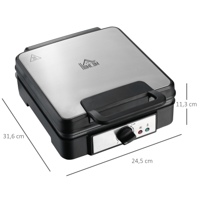 HOMCOM Waffeleisen 4 Waffeln mit antihaftbeschichteten Platten verstellbarer Temperatur rutschfeste Füße 1200W Aluminium Schwarz 24,5 x 31,6 x 11,3 cm