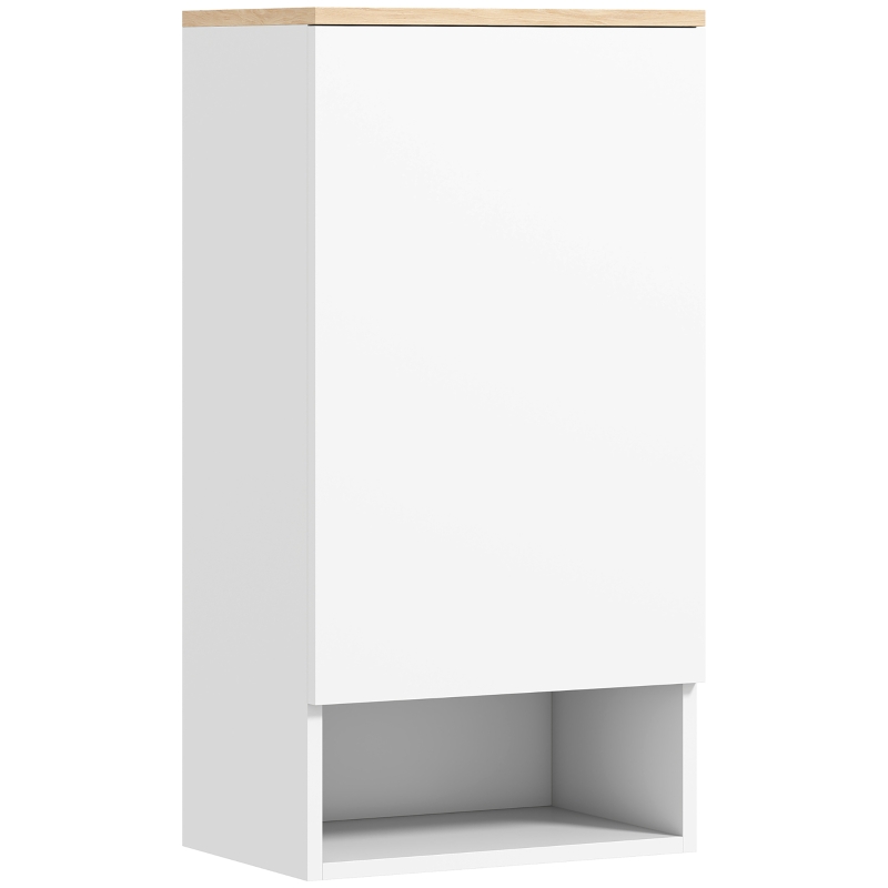 HOMCOM Wandmontierter Badezimmerschrank, Wandschrank für Badezimmer mit verstellbaren Ablagen, offenem Fach, Holz, Weiß