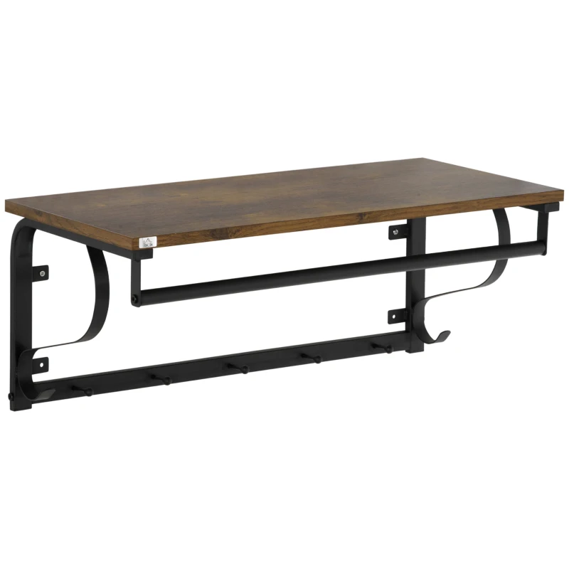 HOMCOM Wandregal Garderobenregal mit Haken 66 x 30 x 27cm Stahl+Holz Braun+Schwarz