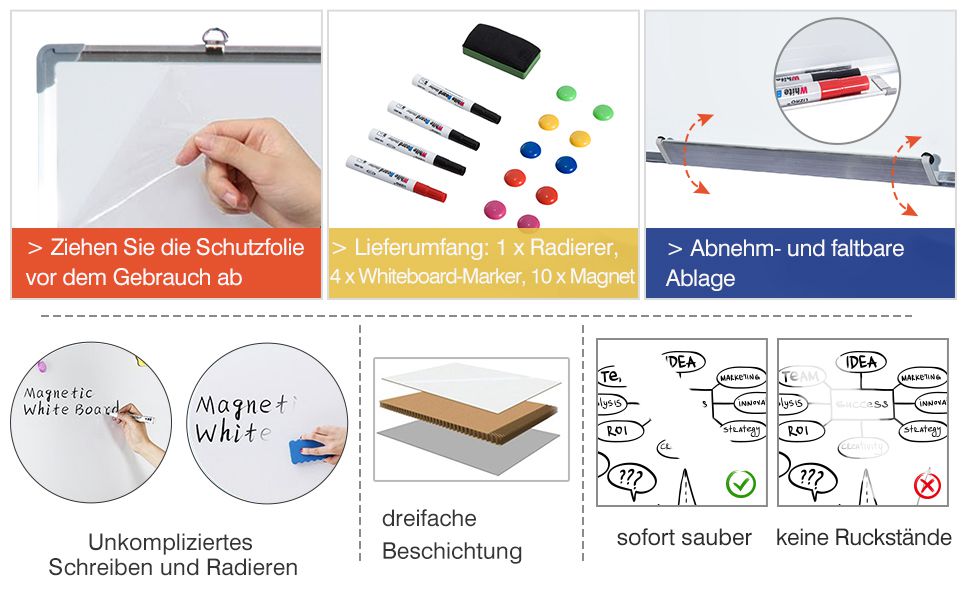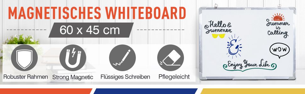 HOMCOM Whiteboard Magnettafel Wandtafel Weißwandtafel magnetisch mit Alurahmen inkl. Boardmarker Boardlöscher und Haftmagneten 60x45 cm