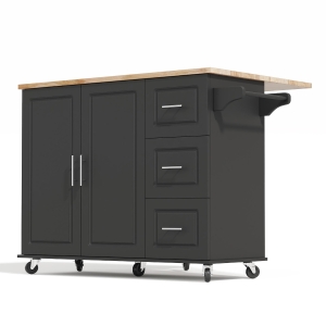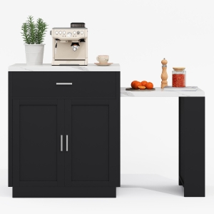 Kücheninsel mit Klapptisch, großer Stauraum, Weinregal, Handtuch- und Gewürzhalter, 137,9 x 45/73 x 92,2 cm, Schwarz