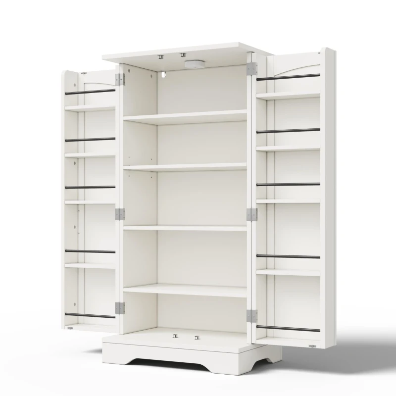Küchenschrank mit LED-Sensorlicht, großer 2-türiger Aufbewahrungsschrank mit verstellbaren Regalböden & Türablagen, 60×40×120 cm, Weiß