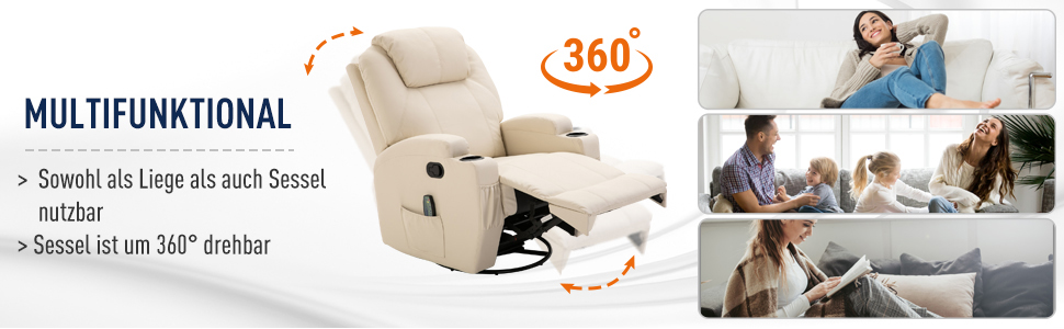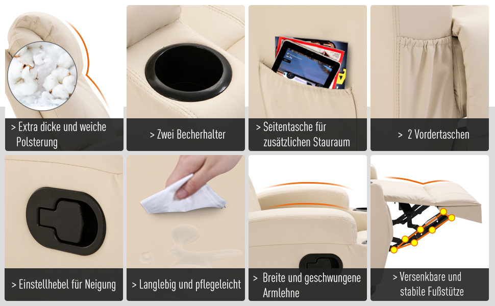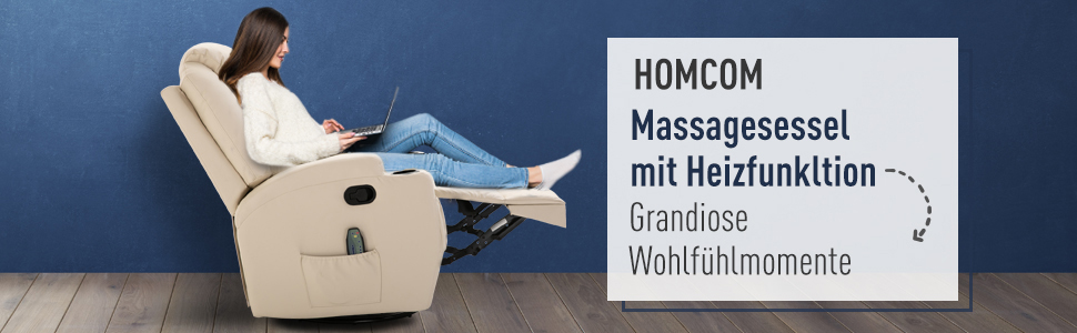 HOMCOM® Massagesessel Wärmefunktion | Eco-Leder, Schaumstoff, Metall | 84 x 92 x 109 cm | Creme