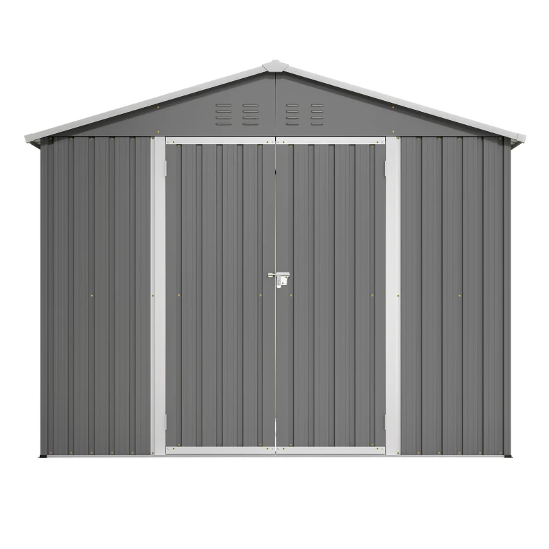 Metall-Gartenschuppen, breite Doppeltür, für Gartengeräte und Werkzeugaufbewahrung, 229x180x191 cm, Anthrazit