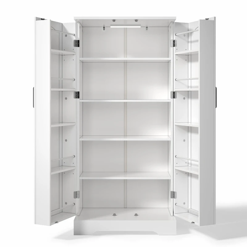 Multifunktionaler Küchenschrank mit LED-Sensorleuchte, Doppeltür mit Staufach, 60x35x128 cm, Weiß