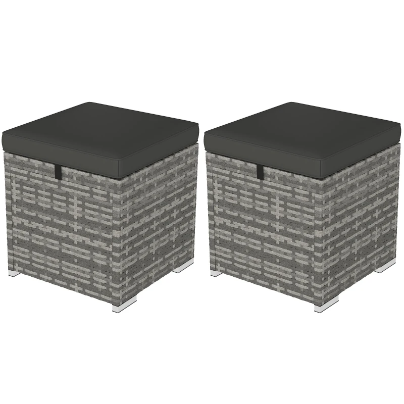 Outsunny 2er Set Rattan Hocker Sitzhocker mit Rattanoptik Stauraum Kissen Deckel 120 kg belastbar 40x40x41cm Dunkelgrau