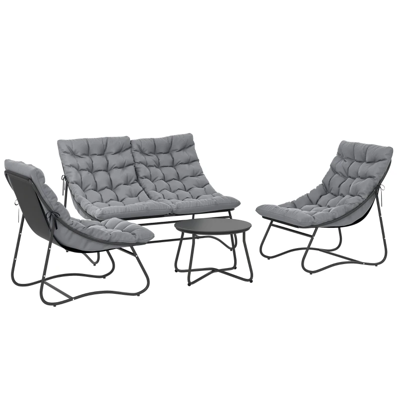 Outsunny 4-Sitzer Gartenmöbel-Set, 2 Stühle, 1 Doppel-Sofa, 1 Tisch, dicke Kissen, Stahlrahmen, für Terrasse, Grau