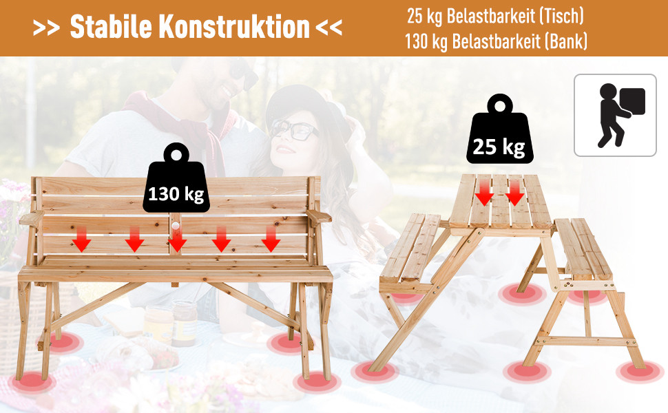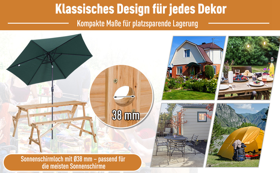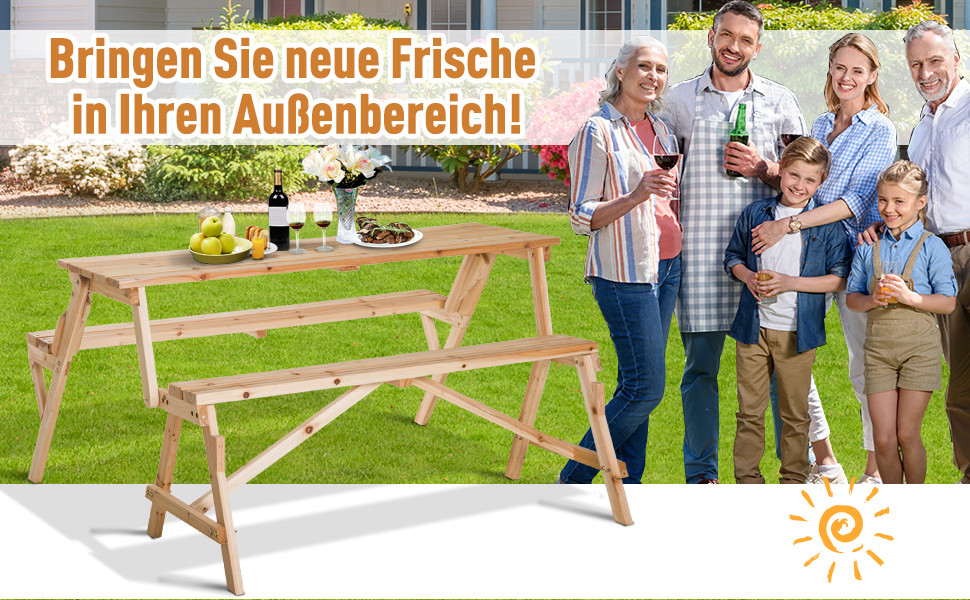 Outsunny® Bierzeltgarnitur 2-in-1 klappbar Sitzgruppe Gartengarnitur 1 x Tisch 2 x Sitzbank Tannenholz Natur 138 x 130 x 73 cm