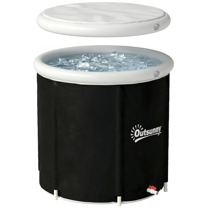 Outsunny Eisbad Ø78 cm Faltbare Eisbadewanne aufblasbare tragbare Eistonne 280L mit 3 Isolierschichten Abdeckung, Schwarz