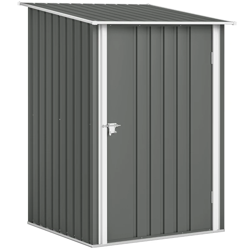 Outsunny Gartenhaus Geräteschuppen aus verzinktem Stahl mit Tür, 100x104x160 cm, Hellgrau
