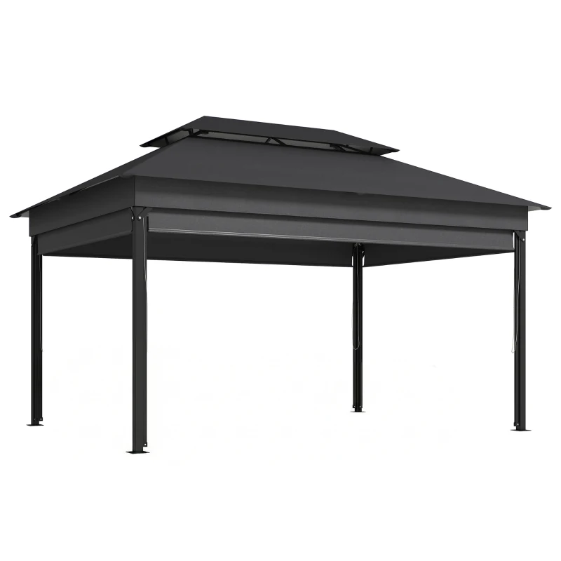 Outsunny Pavillon ca. 4x3m Wasserabweisend Stabil Winterfest Gartenpavillon mit Rollos Doppeldach Dachränder Metallrahmen