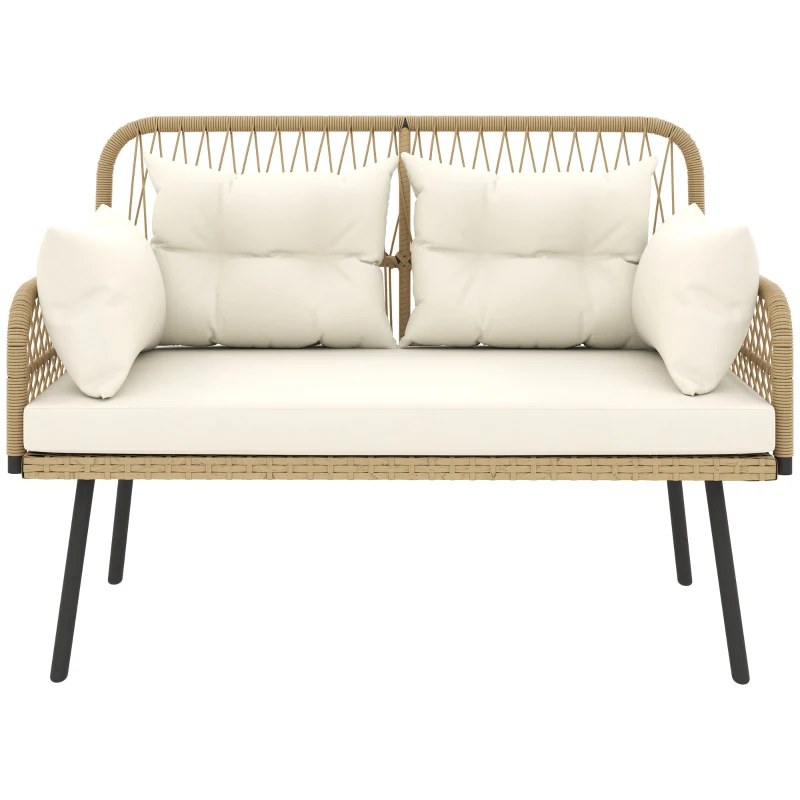 Outsunny Gartensofa mit Kissen 2-Sitzer Sofa Outdoor Balkon Sofa Rattansofa Polyrattan 115 x 61 x 82 cm Naturholz