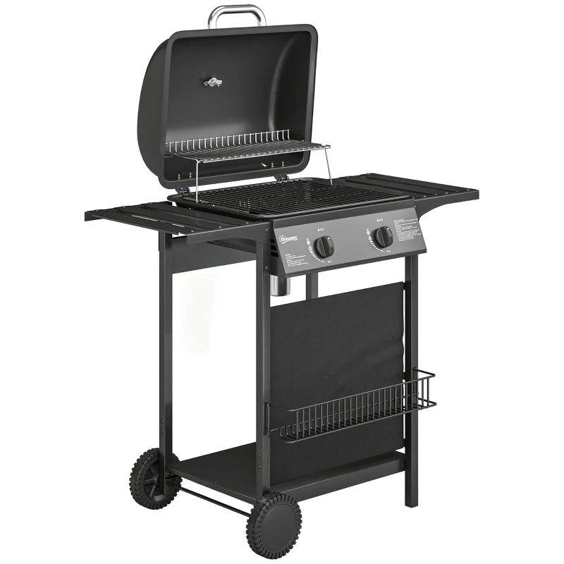 Outsunny Gasgrill 5 KW 2 Brenner BBQ Grillwagen Edelstahl inkl Seitentisch Unterkorb Frontabdeckung Thermometer Emaille-Grillrost