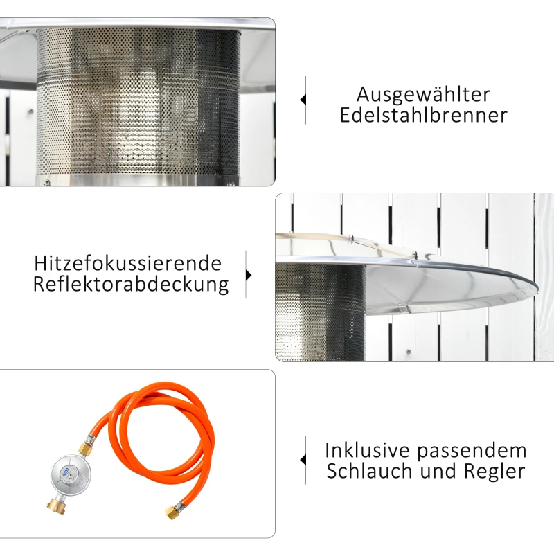 Outsunny Heizstrahler Terrassenheizer mit Drehknopf Rädern Terrassenstrahler mit automatischer Sicherheitsabschaltung rollbar Gas 12,5KW schirmförmig Metall rostfreier Stahl Kohlegrau Ø81,5 x 225 cm