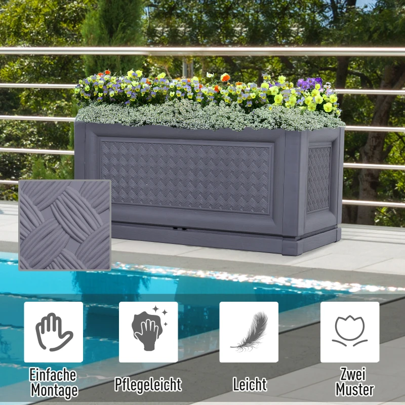 Outsunny® Hochbeet Gartenbeet Pflanzkasten Blumenkasten 2 Muster Abflusslöcher PP Grau 80 x 40 x 38 cm