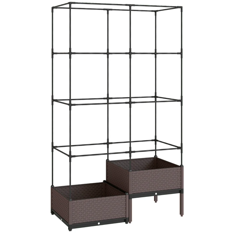 Outsunny Hochbeet Pflanzkasten mit Rankgitter, Abflusslöchern, Pflanzkübel aus Kunststoff 100 x 50 x 174 cm(m-2)