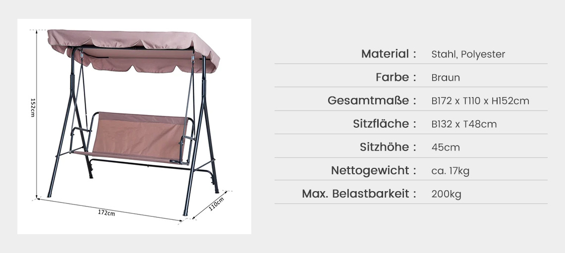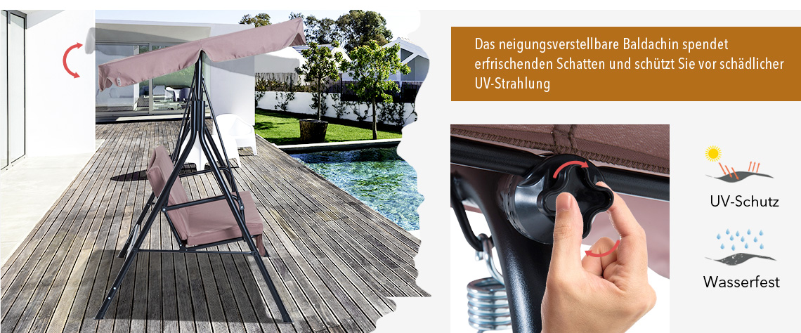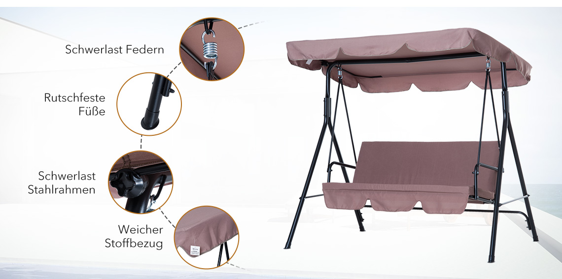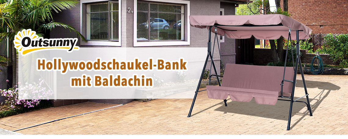 Outsunny Hollywoodschaukel Gartenschaukel, 3-Sitzer mit Dach, Altrosa